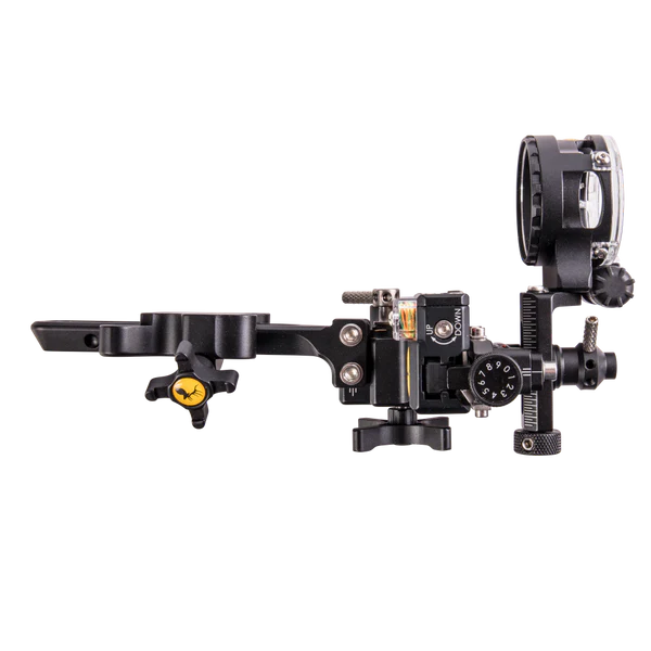 The advanced tool-free micro-click windage and elevation adjustments allow for effortless fine-tuning, while fiber optic yardage indicators adapt to changing environmental conditions for enhanced visibility. A triple-axis leveling system strengthens accuracy, even at steep angles and longer distances. Complete with the React One Pro Dovetail sight, ten custom sight tapes, and a lens retainer ring compatible with 1.75-inch lenses (lens not included), this sight is built for hunters who demand the best in performance and reliability.