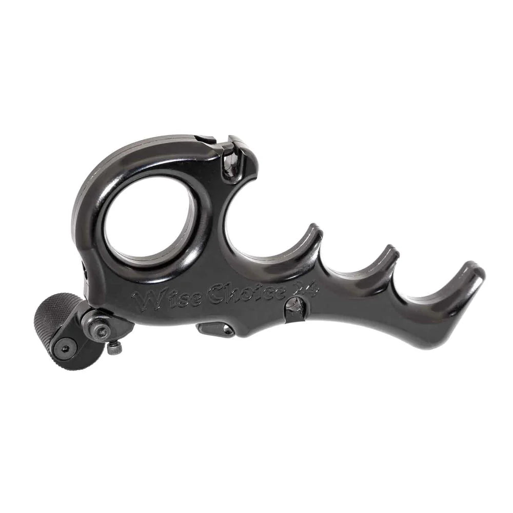 The Wise Choice is a thumb trigger release that shares the geometry with the popular 1st Choice release, but adds an index finger hole to assist with consistent index finger placement. It has all the highly-praised features of the 1st Choice, such as an auto-closing jaw and the set screw tension adjustment system.