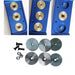 This weight kit contains six pieces of stainless steel disk weights and six screws. Compatible with Gillo G1, G2, GQ and GT series risers. The weight kit allows for an alteration balance and torsional reaction to the riser that suit the archer.