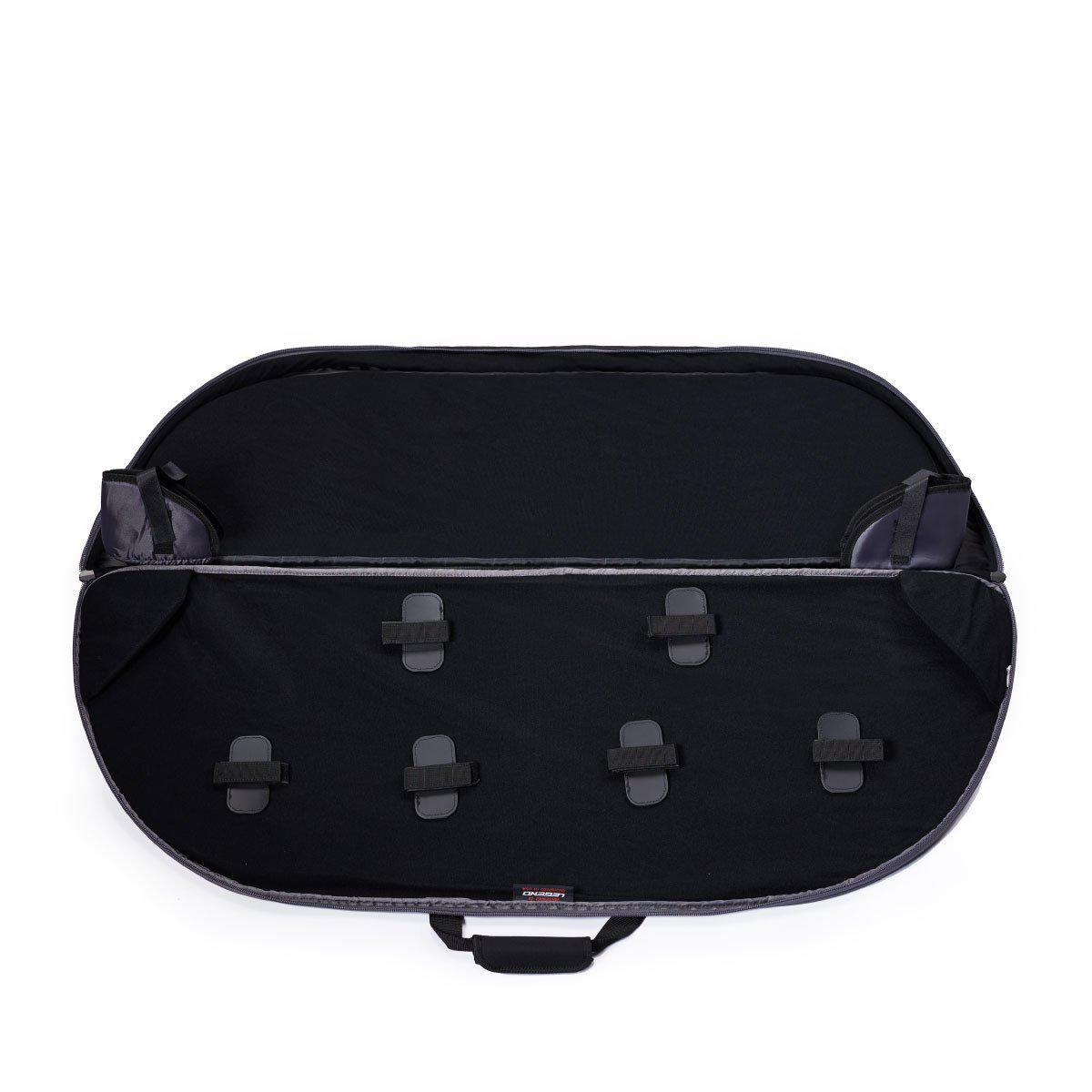 The Legend Archery Double Two case holds two compound bows up to 41" ATA. The Case features thick foam inside for hassle-free protection, as well as PE board panels for more durability. Strong nylon construction throughout means that it can take a lot of wear before it will ever tear. Oversized zippers are used on every pocket. The front pocket can house your arrow box, an inside mesh pocket is great for small items and a back zippered pocket will keep any items safe and dry. The Double Two's neoprene padded removable shoulder strap and cushioned handles make this case easily and comfortably transportable.