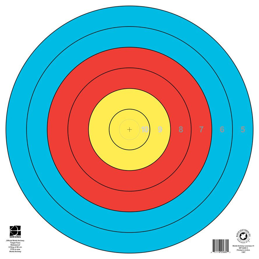 Maple Leaf official World Archery approved 80cm, 6 ring target Face.