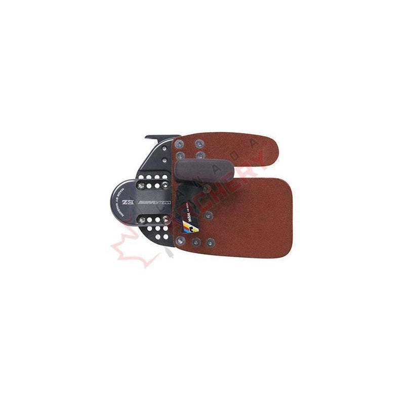 The EZ finger tab is designed with an adjustable plate to perfectly fit your palm and allow for comfortable and natural hooking. The small size of the tab takes away obstructions.